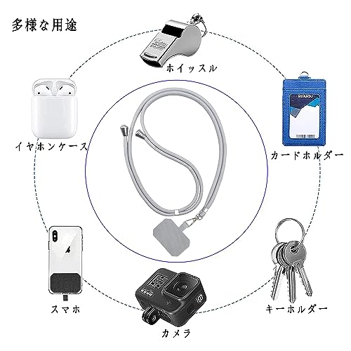 スマホストラップ ネックストラップ 携帯ストラップ ナイロン製 首掛けストラップ 肩掛けストラップ 長さ調整可能 紛失 落下防止 忘れ物防止 軽量 耐久性強化版 (ライトグレー)