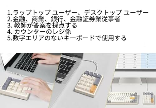 【人間工学に基づいたデザイン】段付きキーキャップと調節可能なキックスタンドで、人間工学に基づいたタイピング体験を提供します。手に簡単にフィットし、手首の疲労を和らげます。 当社のナンバーパッドは、独立したキーパッドのない小さなノートパソコンに最適なアクセサリーとしても使用できます。従来のノートパソコン用のメンブレンナンバーキーパッドとは異なり