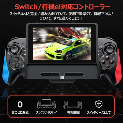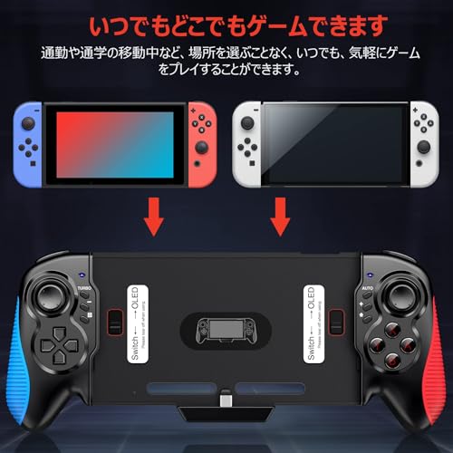 スイッチ コントローラー 携帯モード専用Game controller for Switch グリップコントローラー Switch OLEDジャイロセンサー搭載 [有機ELモデル対応] 振動機能 有線接続 充電 コード不要 代替品 互換品
