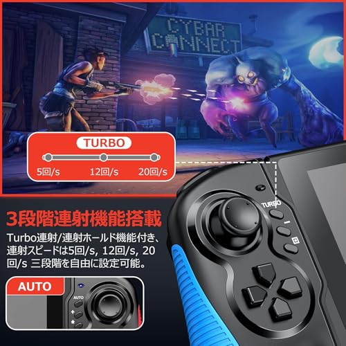 【TURBO連射】 このグリップ コントローラー はTURBO機能がついてます。ゲームによって当機能(5/s、12/s、20/s)を設定して対戦の時存分に盛り上がれます!ターボ設定の連射速度などはコントローラー スイッチの振動によって判別できる。格闘系ゲームなら、是非この連射機能を利用すれば、勝率をアップさせましょう!
