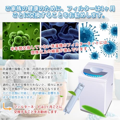 3.【交換とお手入れ】洗濯機が稼働した後、内部の水分が短時間で乾燥しにくく、使用しない間にフィルターに大量のカビが繁殖することがあります。フィルターの使用期間が長くなるほどカビの発生が増えます。ご家族の健康のために、フィルターは3ヶ月ごとに交換することをお勧めします。定期的なメンテナンスも重要で、フィルターを取り外し、ごみを捨てて洗浄すれば、簡単に清潔を保つことができます。