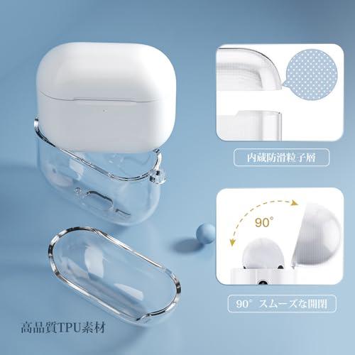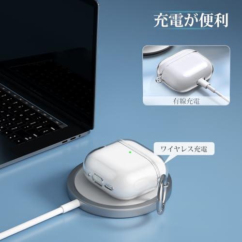 AirPods 4 ケース AirPods 第四世代 ケース TPU製保護カバー 全面保護 耐衝撃 紛失防止 落下防止 傷つきにくい 防水 防塵 黄変防止 装着充電可能 カラビナ付き Airpods4 (クリア)