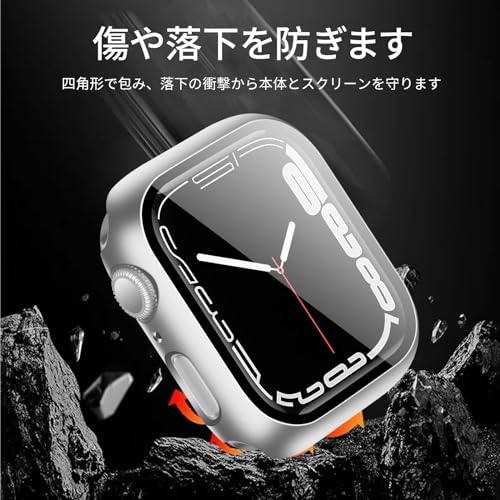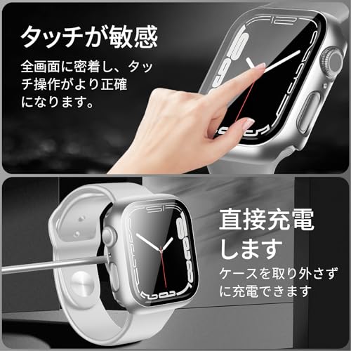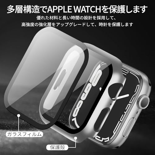 アップルウォッチ カバー Series 10 アップルウォッチ ケース PC素材 Apple Watch ケース ガラスフィルム 一体型 二重構造 Apple Watch カバー 全面保護 強化ガラス キズ防止(42mmシルバー)