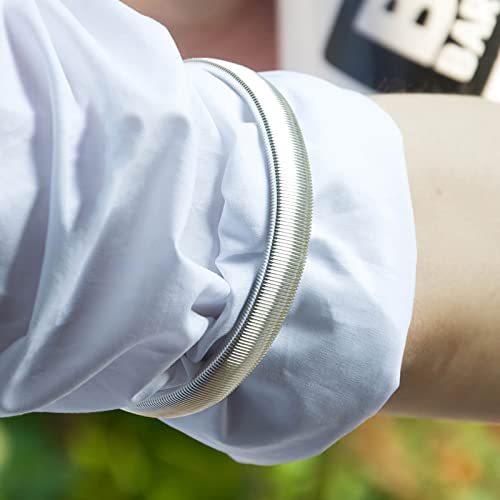 アームバンド スプリング ループ式 アームベルト アームクリップ 金属製 袖丈 調整 入学式 おしゃれ 2個セット (シルバー)