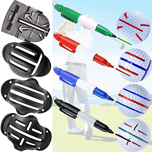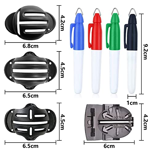 【テンプレートとマーカーペンの8点セット】 梱包内容:ABS製 ゴルフボールライナー・テンプレート×4個(半面覆い3個、全面覆い1個)、マーカーペン×4本(グリーン・レッド・ブルー・ブラックそれぞれ1本)。)、ボールのラインを自由にカスタムできます。一本線や三本線、十字ライン、T字ラインなどに対応できるシンプルで使いやすいゴルフライナーセットです。矢印を入れることも可能で、色々試してから自分の好みやスタイルに応じて選べます。
