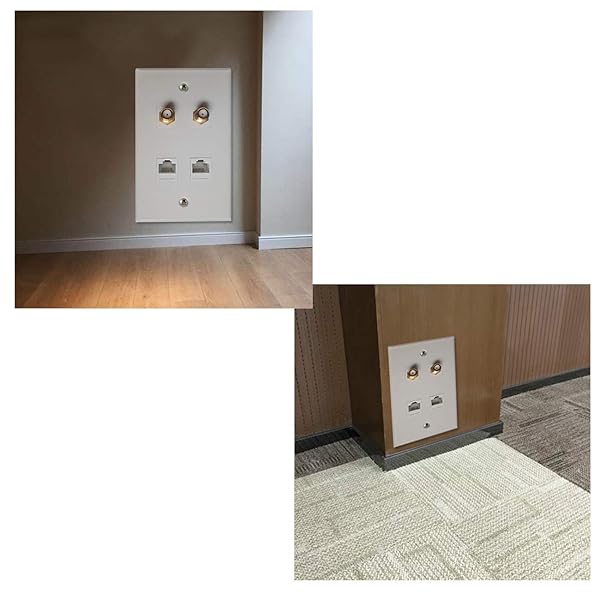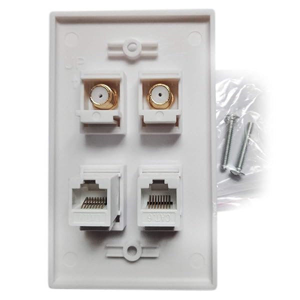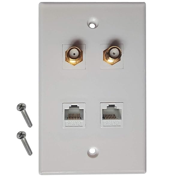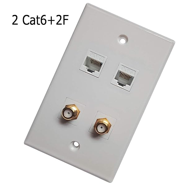同軸ケーブル tv- F型 2ポートCat6 Ethernet壁プレート ホワイト サイズ 70x115mm