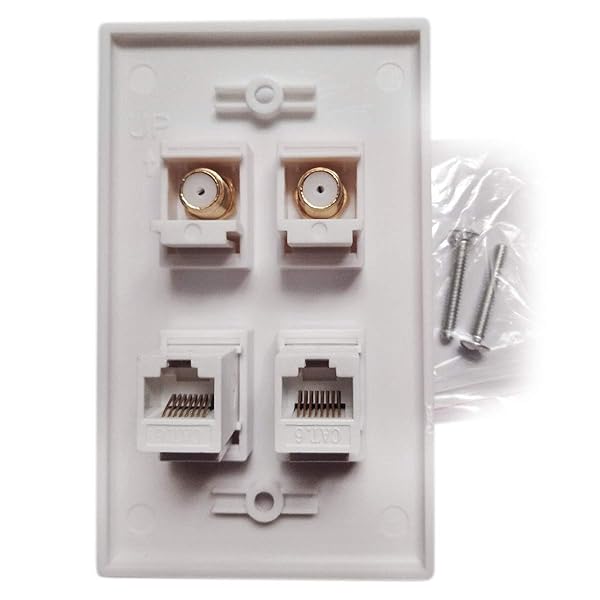 パッケージ内容: 4ポートイーサネット&同軸ウォールプレート x 1 (ネジ付き)。