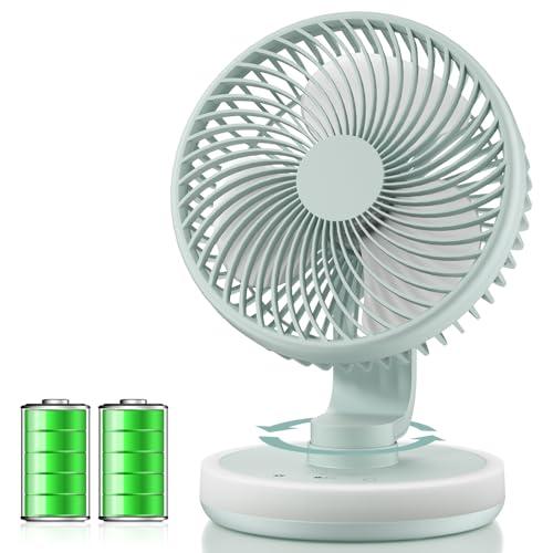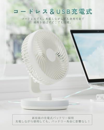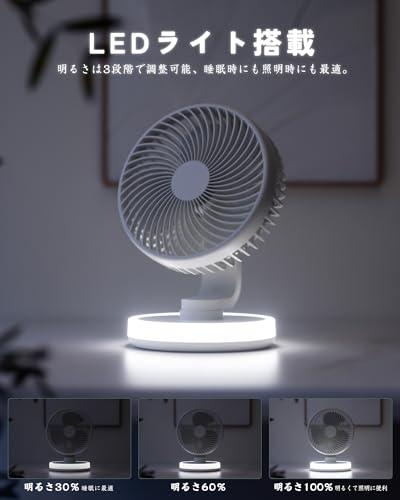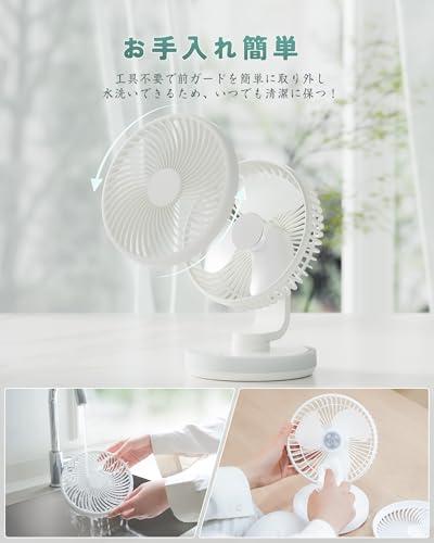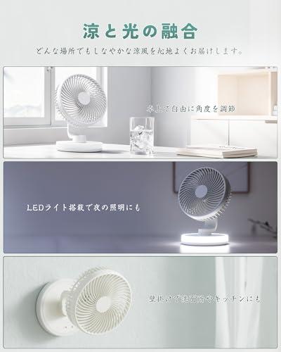 卓上扇風機 小型 充電式扇風機 自動首振り 4段階風量 静音 LEDライト付き 強力 DCモーター 直径16.5cm コンパクト USB扇風機 ミニ デスクファン サーキュレーター 壁掛け オフィス / 寝室 / キッチン / アウトドア用 (ブルー)