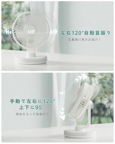 【自動首振り&静音設計】左右120°の自動首振り機能を搭載しており、頻繁に手動で位置を調整する手間が省けます。また、上下95°および左右120°の手動調節が可能で、座っている姿勢や寝転んでいる姿勢に合わせて、風を快適な位置に送ることができます。(電源を切ると首振りの位置が正面に戻るのが便利です。)高性能DCモーターを採用しており、弱風モードではほとんど音がせず、涼しい風を楽しみながら騒音に邪魔されることがありません。(ユーザー100%が実感!今まで使った扇風機の中で最高レベルの静音性を実現。)