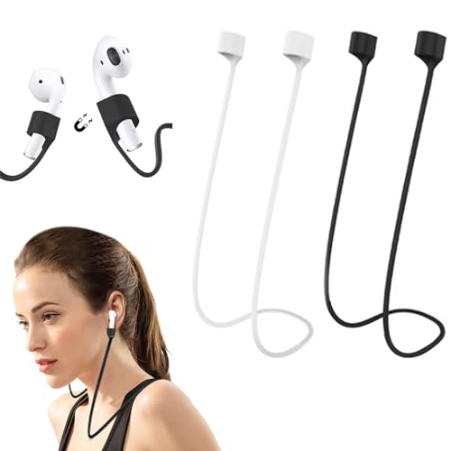 イヤホン ストラップ ヘッドセット ストラップ マグネット シリコン エアポッズ ネックストラップ 軽量 ケーブル アクセサリー ロープ 落下防止 紛失防止 収納便利 スポーツ最適 ワイヤレス イヤホンブラック 白 (2個セット)