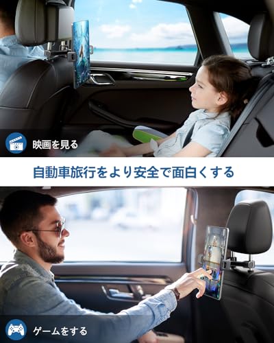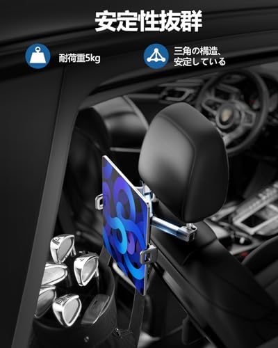 タブレットホルダー 車 後部座席 車載ホルダー ヘッドレスト取付 車載 タブレット ホルダー 360°回転 車 ipad ホルダー ヘッドレストバーの幅さ3.5-9.4インチ 車用 ホルダー ヘッドレスト用 後席用 転落防止 安定性 簡単取付 4−14インチの携帯電話 タブレッ...