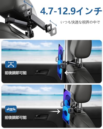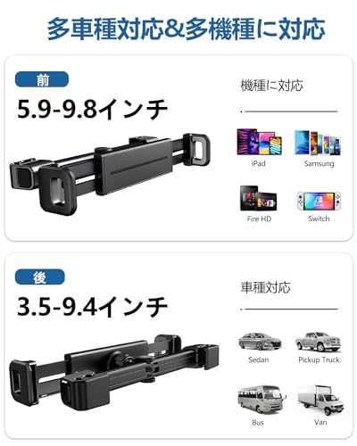 【取り付けやすく、ヘッドレストに取付の範囲約3.5〜9.4インチ】この後部座席 タブレットホルダーは、工具を必要とせずに簡単に取り付けることができます。使用しない場合、この車載携帯電話/タブレットスタンドは折りたたむことができ、完全にフィットし、後部座席のスペースを占有しません。この