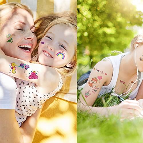 タトゥーシール キラキラ かわいい ユニコーン 蝶 キャンディー 人魚姫 多彩 ボディシール 女の子と男の子用 小さい こども一時的な褒美フェイスシール 水転写ステッカー 誕生日 ハロウィン仮装コスチューム小物 12枚 子供