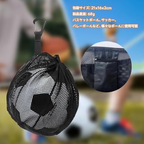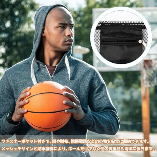 【多功能収納】このサッカーボールネットは、ファスナーポケット付きで、鍵や財布、携帯電話などの小物を安全に収納できます。メッシュデザインと防水底部により、ボールだけでなく他の貴重品も清潔に保ちます。