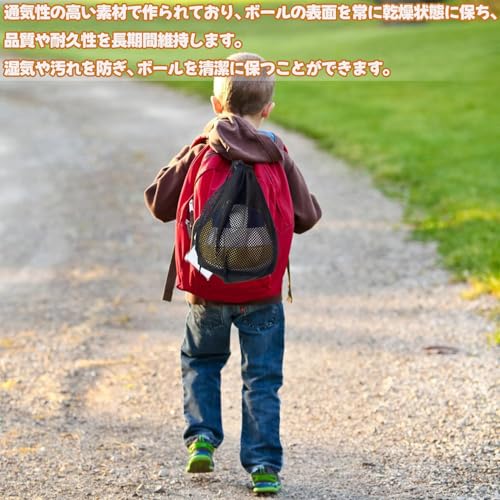 【優れた通気性】このサッカーボールネットは、通気性の高い素材で作られており、ボールの表面を常に乾燥状態に保ち、品質や耐久性を長期間維持します。湿気や汚れを防ぎ、ボールを清潔に保つことができます。