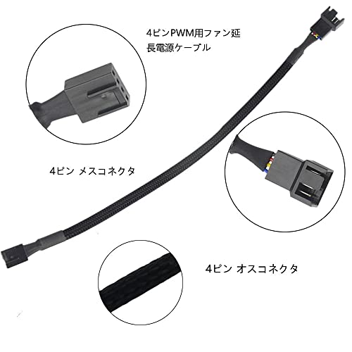 ファン延長ケーブルは、4ピンメスコネクタから4ピンオスコネクタで、CPUまたはPCケースファンに適しています。
