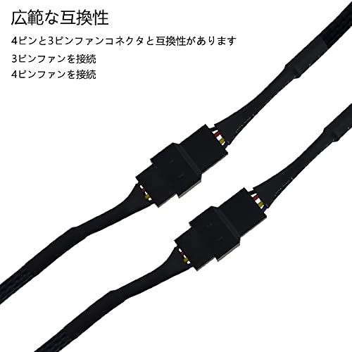 高品質の4ピンファンスプリッターケーブルは、マザーボードとCPUファンを最適な冷却のために配置する柔軟性を提供し、ケース内のファンケーブルを延長します。