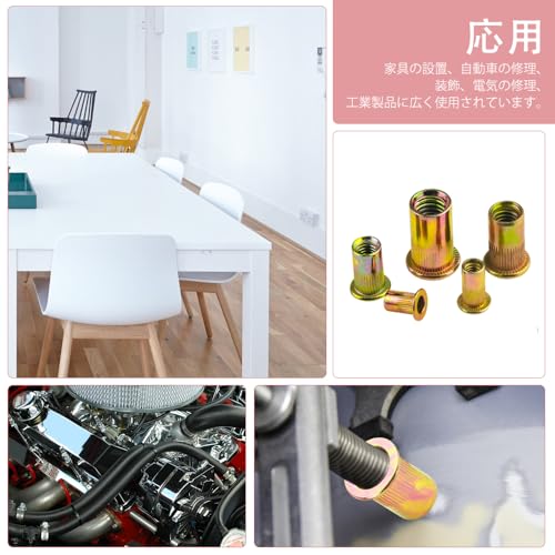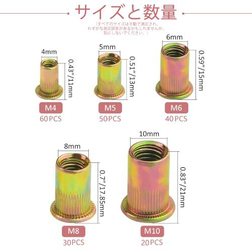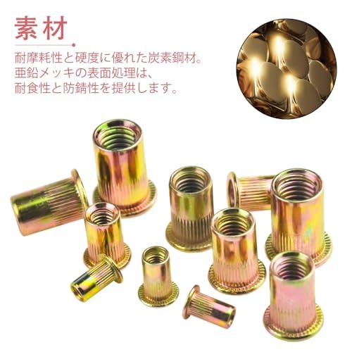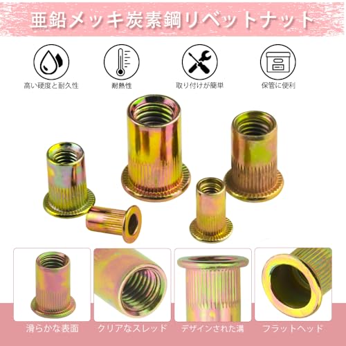 リベットナット M4 M5 M6 M8 M10 ナッター セット 中空リベット フラットヘッドインサートナット 亜鉛メッキ炭素鋼 機械修理 200個セット