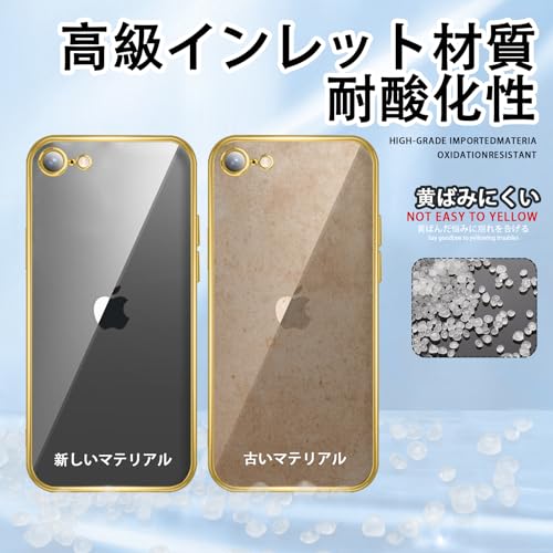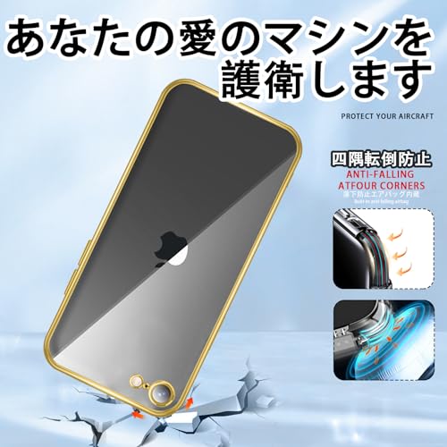 iPhoneSE2 iPhoneSE3 iPhone7 iPhone8 ケース クリア バンパー カバー アイフォンSE3 透明 スマホケース TPU 薄型 全面保護 耐衝撃 軽量 メッキ加工 ストラップホール付き 摩擦防止 滑り止め 落下防止 4.7インチ (ゴールド)
