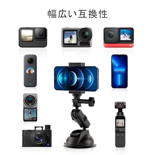 GoPro Insta360 X5車載カメラ用 吸盤マウントカメラカーマウント サクションカップ フロントガラスホルダー車載 360度回転 強力吸引 携帯電話用電話ホルダー付きGoPro Max Hero 13 12 11 10 9 8 Insta360 DJI Osmo Pocket Action 4 IPhone Samsung Sony Nikon...