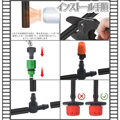 【30m ホース付属】必要に応じて長さをカットして自由に組み立てることができます。 また、接続をより良くするために、ご使用前にホースをお湯(70-80℃)に10-15秒ほど浸して柔らかくしてください。