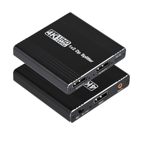 【DisplayPort 1.4 分配器 1 入力 2 出力】この分配器 スプリッター 2 ポートは、1 チャンネルの DisplayPort 入力信号を歪みなく 2 つの DisplayPort 出力に同時に表示できます。最高 4K@144Hz (3840x2160@144Hz) の超高解像度の視覚周波数解像度をサポートします。この DisplayPort モニター分配器 は、DisplayPort 分配器 出力ポートを備えたパソコン/ラップトップ/グラフィック カードなど、DP ポートを備えたディスプレイ デバイスで幅広く使用できます。DP信号と3.5mm音声の同時出力をサポートします。