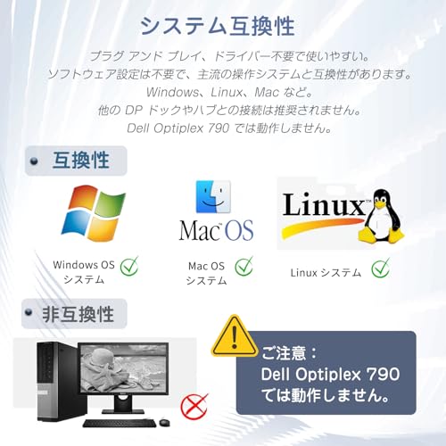 【4K@144Hz UHD】最高解像度4K@144Hz、フルHD 3Dステレオディスプレイをサポートし、より広い画面表示とより優れた作業体験をお楽しみいただけます。デュアルモニターで最高解像度4K@144Hzを実現するには、デュアルディスプレイポートモニターがDSCと4K@144Hzをサポートし、パソコンのDP出力ポートがDP 1.4である必要があることに注意してください。解像度が 4K を超える場合は、DP 1.4 ケーブルを使用する必要があり、出力信号に接続される DP ケーブルの長さは 10 メートルを超えてはなりません。(注意:1MSTモードの場合:4K@120Hz 2分配器モードの