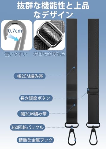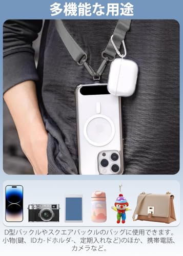 【多機能】スマホストラップとして、すべての携帯電話モデルに適用可能。バッグのショルダーベルトとしても、ほとんどのバッグやトートバッグに適しています。ボストンバッグ、カメラケース、エコバッグ、PC/タブレット バッグ、 機材ケース、保温袋、撮影用資材ケース、ビジネスバッグ、スリーブ、ママバッグ、ショルダーバッグ、ジム・スポーツバッグ 等のスペア・交換用 ショルダーベルト/肩掛けひもです。