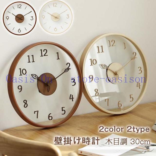 壁掛け時計 壁掛時計 掛け時計 木製 ガラス おしゃれ ウォールクロック クロック 時計 インテリア モダン 北欧 新築祝い 結婚祝い ギフト 電池 静音 30/35cm