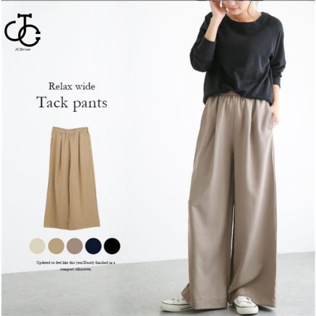 パンツ レディース 春 秋 夏 ワイドパンツ イージーパンツ ウエストゴム ロングパンツ ちょいゆる カジュアル 無地 ガウチョ バギーパンツ 着痩せ 美脚
