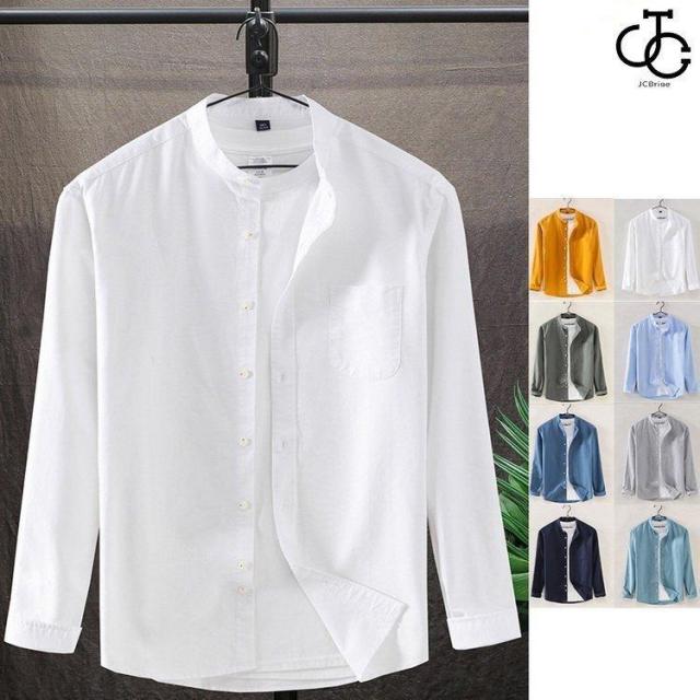 バンドカラーシャツ メンズ 長袖 シャツ カジュアルシャツ トップス 無地 スタンドカラー ビジネスカジュアル 40代 50代 60代