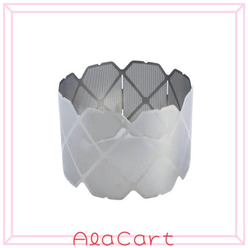 この薄さのおかげでどんなクッカーにもスルリとスタッキングすることができるんです。 ひとつ道具が減る上にコンパクトに収納することができて一石二鳥な気分です。 組み立てもフックに掛けるだけでとても簡単。 3箇所の切れ込みがあり、そこに2個の突起を差し込むだけで風防と五徳が完成。 組立サイズを3段階に調整可能(直径:82?、72?、62?)なので様々なクッカーやストーブと合わせることができます。 シンプル故に壊れることも少なく安心して使用できます。 チタンシートですが、よく見ると目の細かいマイクロメッシュになってるんです。 マイクロメッシュから漏れる炎の揺らぎはずっと見てられるほど美しくて、ランタン?シャンデリア?のような雰囲気で使っていてテンションが上がるし癒し効果も絶大です。