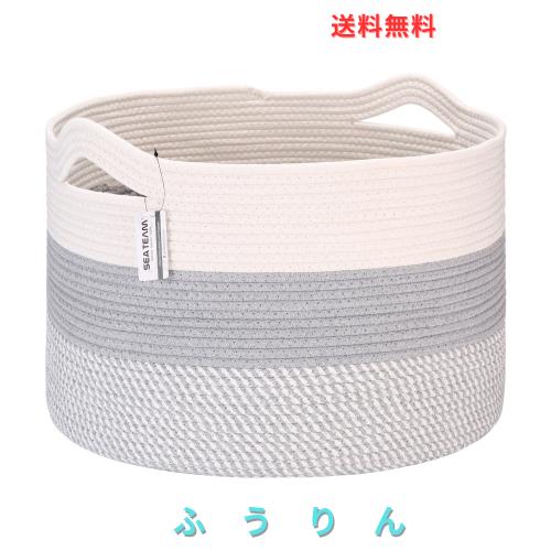 Sea Team 大容量 収納かごバ スケット 持ち手付き ランドリー ランドリーバスケットコットンロープ 収納ボックス 洗濯物 タオル 折りたたみ リビング用 インテリア 収納バスケット おしゃれ 可愛い 混色