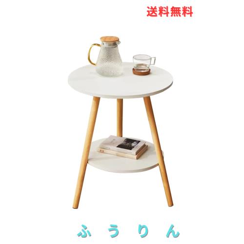 サイドテーブル ベッドテーブル リビングサイドテーブル 棚付 収納 丸形 ナイトテーブル スリム 北欧 おしゃれ (ホワイト, 38*38*55cm)