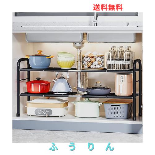 キッチン シンク下 収納ラック シンク下フリーラック ワイド 伸縮タイプ シンク下伸縮棚 キッチン収納棚 簡単組立 洗面台下 横幅調整可能
