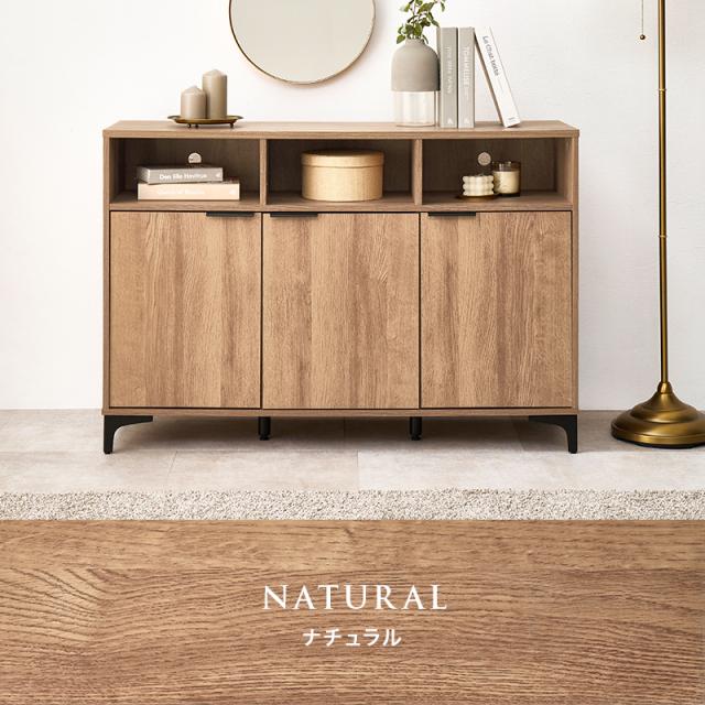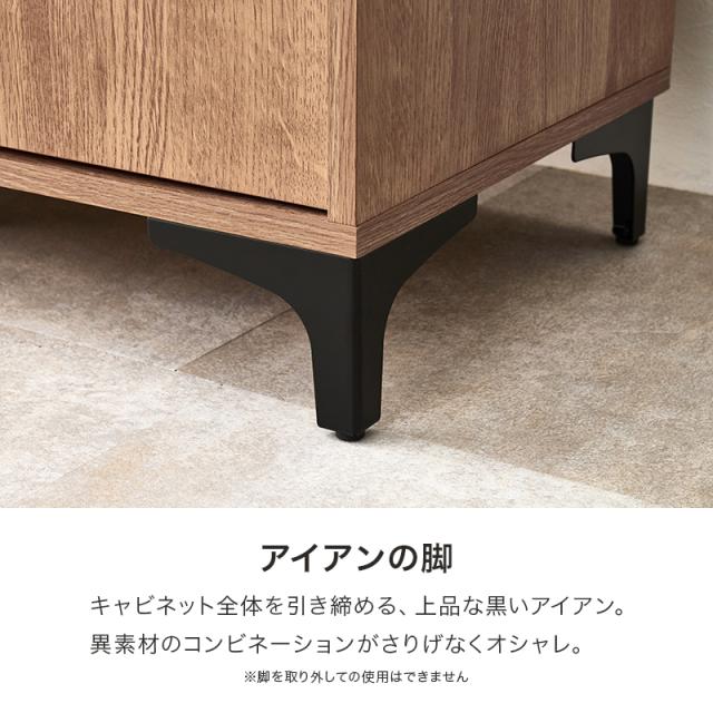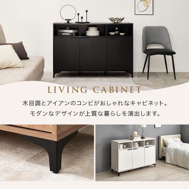 アイアン脚付き リビングキャビネット 幅120 【送料無料】 木製 リビング収納 電話台 FAX台 扉付き おしゃれ ロータイプ 木目 ホワイト ナチュラル ブラウン ファックス台 リビングボード