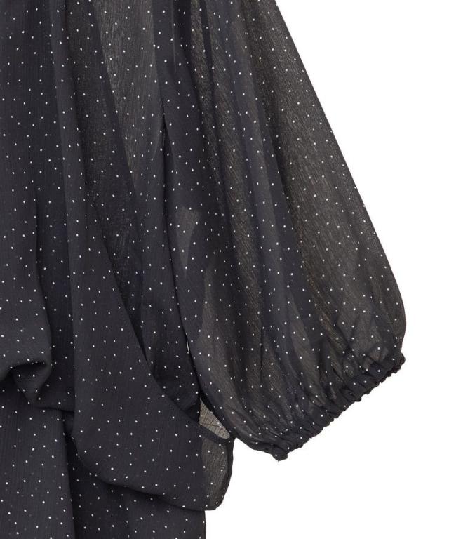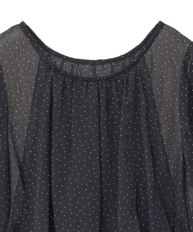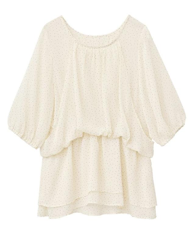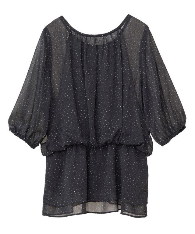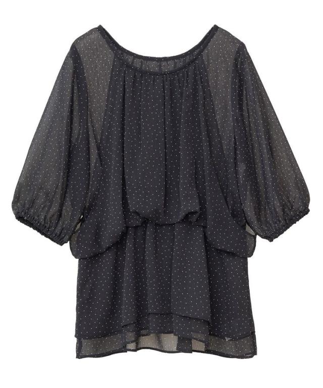 レイヤード風デザインがこなれ感たっぷりなブラウス。ブラウジングしているようなシルエットが気になる部分をカバーして、自然とスタイルアップを叶えます。ポリエステル100%のさらりとした素材感で快適な着心地も嬉しい。小粒ドットで品が良く、オン・オフどちらでも活躍するおすすめのアイテムです。透け感[ややあり]