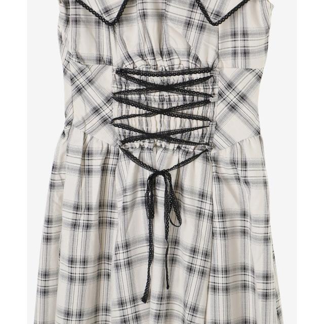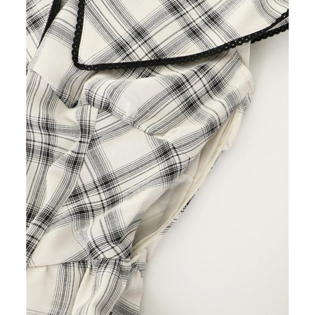 付属のチョーカーが映えるようにデコルテ周りはすっきりとしたデザインに。華奢見えも叶えてくれます◎