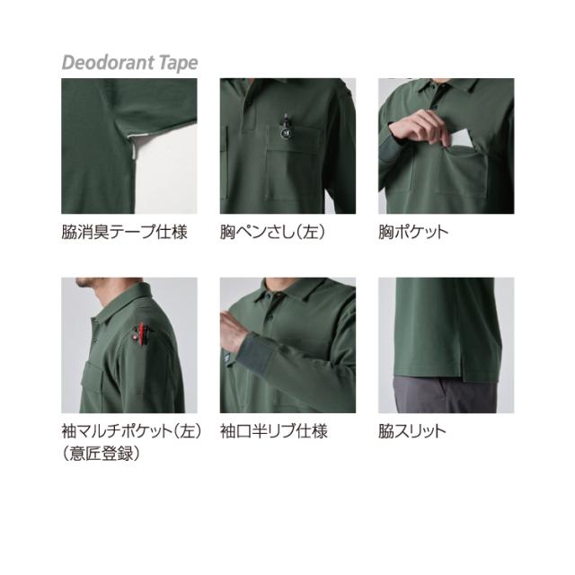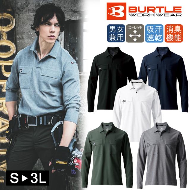 2025年新作 長袖ポロシャツ ユニセックス バートル 515 作業着 鹿の子 かっこいい おしゃれ もてる レディース メンズ 消臭 ストレッチ 吸汗速乾 BURTLE