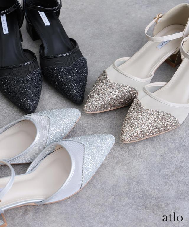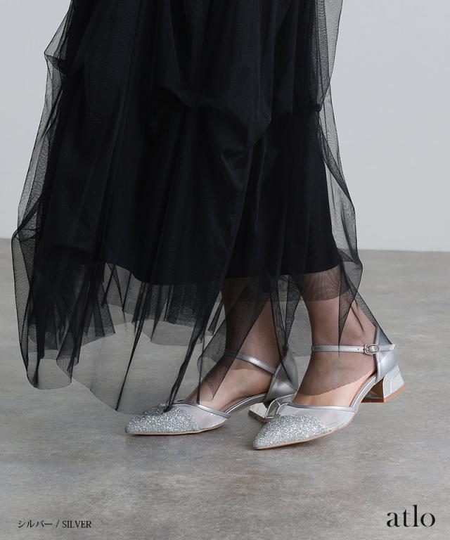 グリッターチャンキーヒールシアーパンプス【410251522】20代・30代・40代・50代・パーティーシューズ・痛くないパンプス・ローヒール・太ヒール・ピンヒール・ヒール・レース・ラメ・デザインヒール・フォーマル・大きいサイズなど・即日発送・送料無料・結婚式・婚活・披露宴・顔合わせ・二次会・同窓会・お呼ばれ・食事会・謝恩会・親族・七五三・お宮参り・冠婚葬祭・弔事・女子会・デート・入学式・卒業式・入園式・卒園式・ママ・マタニティー・セレモニー・セレブ・パーティー