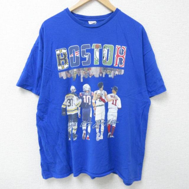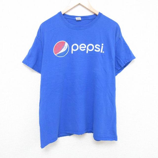 【商品名】 XL★古着 半袖 Tシャツ メンズ グランパ 大きいサイズ クルーネック 青