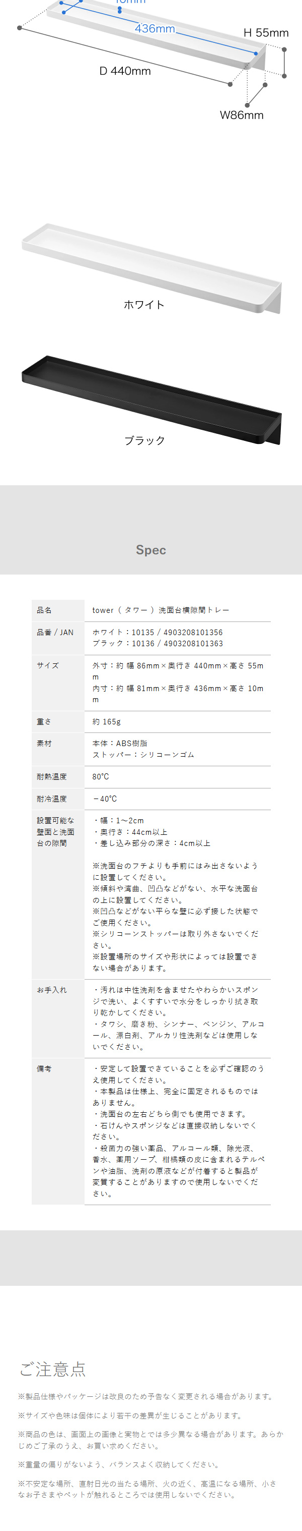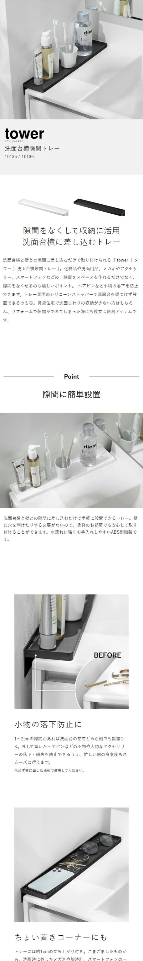 [ 洗面台横隙間トレー タワー ]山崎実業 tower すきま収納 洗面台 隙間 ガード 落下防止 収納 便利 小物置き 工具不要 省スペース 洗面所 マンション 賃貸住宅 リフォーム おしゃれ yamazaki 公式 ブラック ホワイト 10135 10136