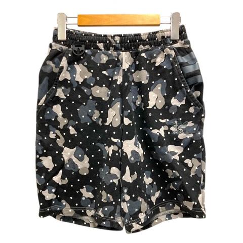【中古】アディダス adidas ハーフパンツ ショートパンツ スウェット カモフラ柄 迷彩柄 ロゴ刺繍 XS 黒 ブラック グレー レディース