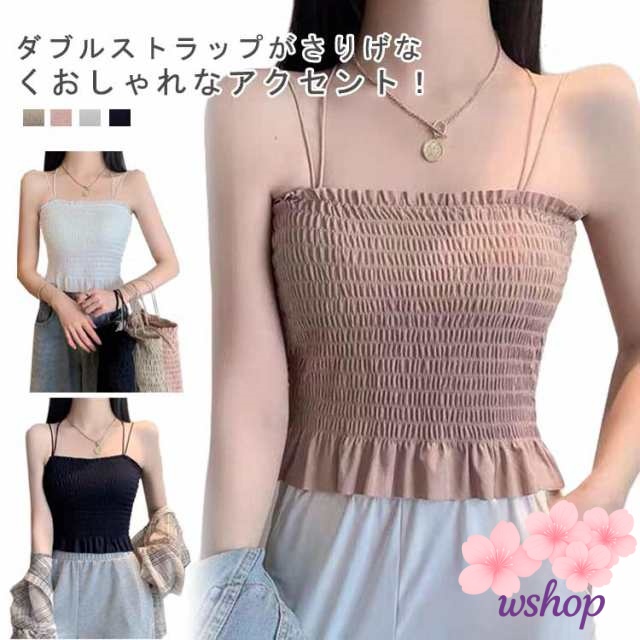 【wshop】カジュアル 肌着 インナー カップ付きキャミソール 女性 大人 フリル きれいめ キャミソール ストラップ ビスチェ 送料無料 下着 可愛い スリム カップ付き トップス ダブル