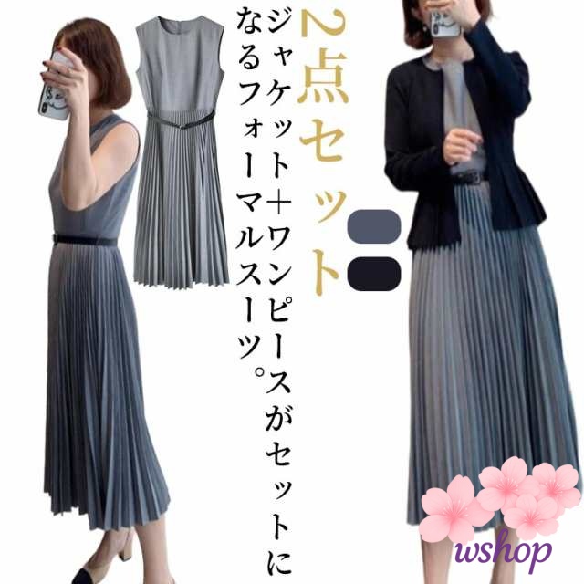 【wshop】ワンピーススーツ レディース 参観日 上品 黒 結婚式 フォーマル プリーツワンピース 七五三 フォーマルスーツ 母 カジュアル 母親 セレモニースーツ 通勤 ジャケット スーツ 2点セット 入学式 セットアップ 卒業式 お宮参り ママスーツ 服装 女性 オフィス