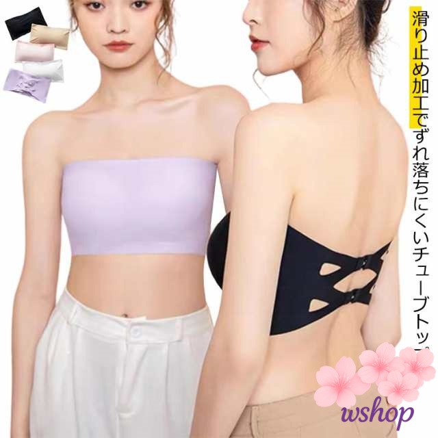 【wshop】送料無料 インナー 肩紐なし トップス 黒 カップ付 涼しい 白 ブラトップ シームレス ズレにくい ダンス ブラジャー ずり落ちない チューブトップ ズレない ずれない ブラ ベアトップ ドレス レディース ブラ ストラップレス