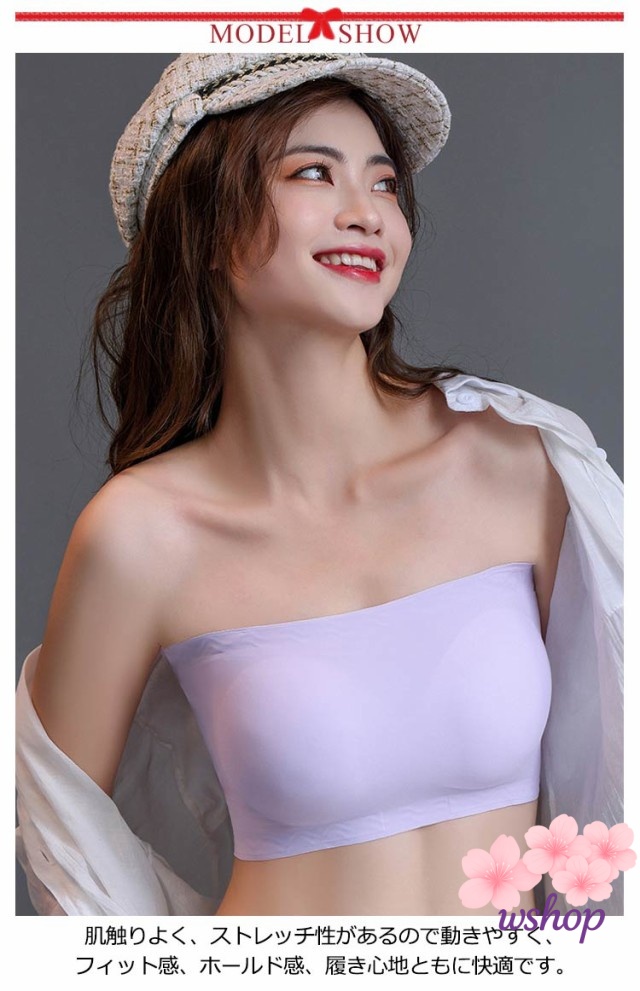 | 滑り止め加工でずれ落ちにくいチューブトップ。 肌触りよく、ストレッチ性があるので動きやすく、フィット感、ホールド感、履き心地ともに快適です。 通気性高いの涼しい生地のため、長時間着ても蒸れず、一日中快適! 日常使いにはもちろん、結婚式、パーティーなど幅広いシーンでも大活躍の肩ひもないブラです。 | |