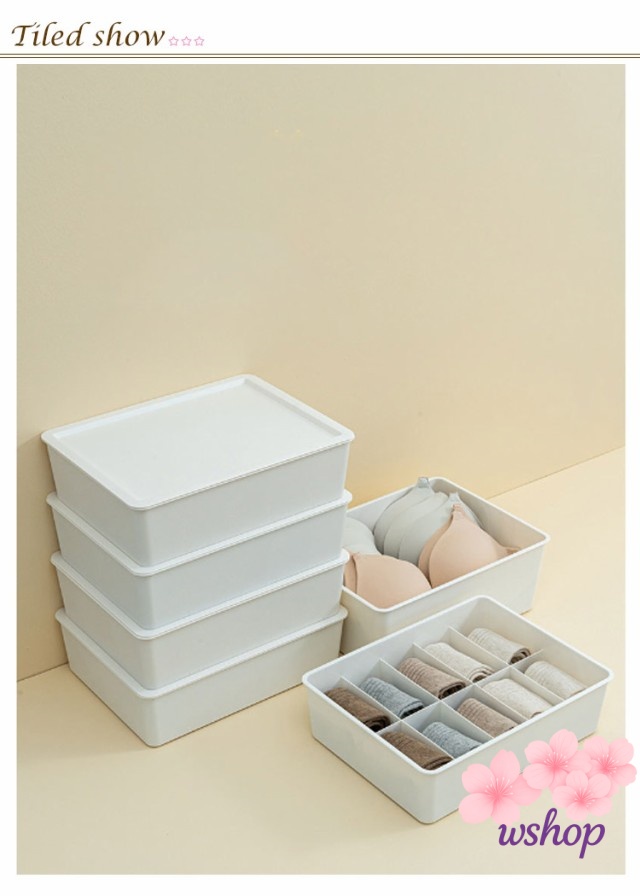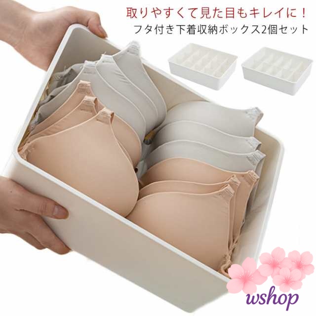 【wshop】下着 チェスト アンダーウェア 2個セット 丈夫 仕切り ランジェリー ギフト 【送料無料】収納ケース 収納ボックス 靴下 小物収納 蓋付 積み重ね収納 プラスチック プレゼント ブラジャー 下着収納ボックス ネクタイ 整理整頓 引出し収納 衣類 収納
