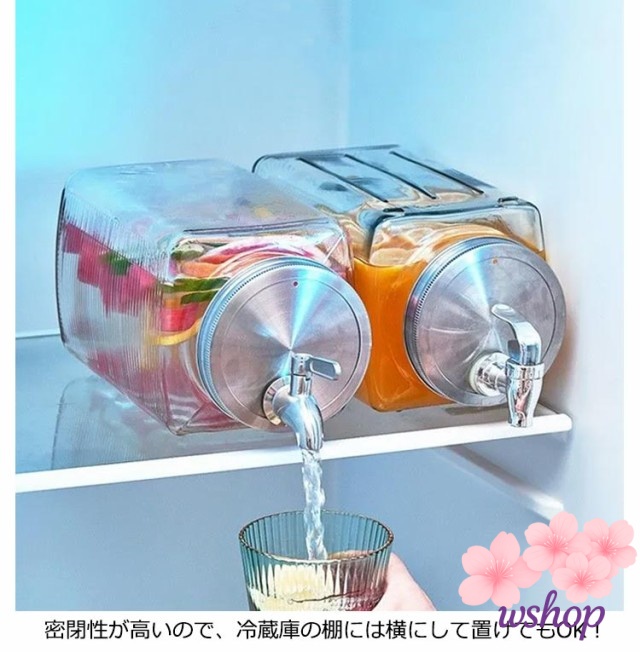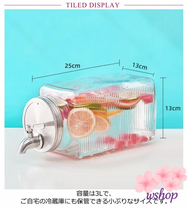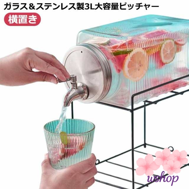 【wshop】果実酒 大麦茶 梅酒 冷水ポット 炭酸 広口 冷水筒 お茶ポット 水差し ガラス ジュース 麦茶ポット 冷蔵庫 ピッチャー ガラス瓶 ドリンク ドリンクサーバー 洗いやすい ジャグ 横置き 【送無】 ジュース作り おしゃれ 水出し 3L ビール樽 大容量 蛇口付き