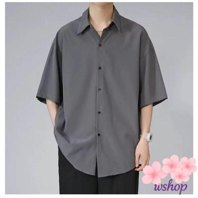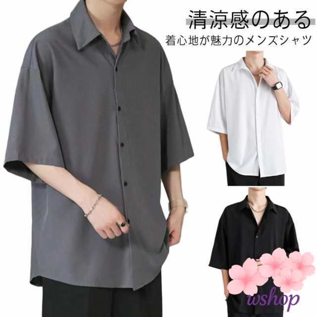 【wshop】半袖 ビッグシルエット ドルマン 半袖シャツ とろみ オーバーサイズ 無地 シャツ シワにならない ロングシャツ 送料無料 オーバーサイズ アイスシルクシャツ 接触冷感 半袖シャツ メンズ 涼しい ビッグシャツ